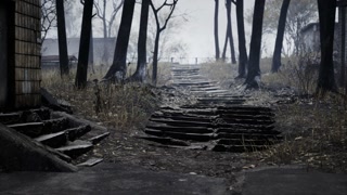 Mysterious abandoned landscape with eerie atmosphere and ghostly remnants