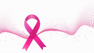Breast cancer awareness month. Pink ribbon and dotted waves on light background. Seamless looping motion design. Video animation Ultra HD 4K 3840x2160