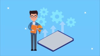 elegant successful businessman lifting bulb and book in tablet ,4k video animated