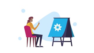 woman communicating with desktop animation