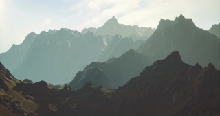 Majestic mountain range bathed in soft sunlight during early morning hours