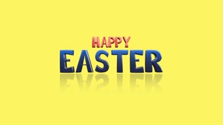 A vibrant yellow banner displays the phrase Happy Easter in bold letters against a dramatic black backdrop, evoking joy and celebration