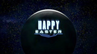 Abstract animated greeting card with Happy Easter text on black reflective background