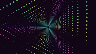 Colorful dots in a spiral pattern on a black background create a dynamic and energetic visual experience. Each dot overlaps the next, forming a mesmerizing circular arrangement