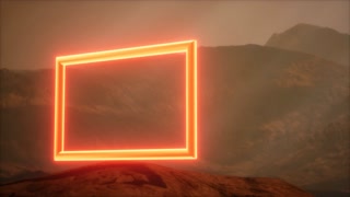 Neon Portal on Mars Planet Surface With Dust Blowing