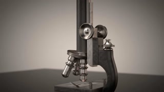 A vintage microscope used to study and analyze microbes, bacteria and cells.