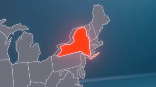 USA Map to New York (NY) Zoom Animation State Highlight & Close-Up. Full HD. 4K