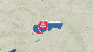 Zoom in to the map of Slovakia with text, textless, and with a flag