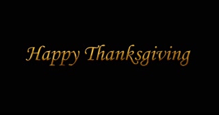 Happy Thanksgiving 2025, Glittering Festival celebration concept animation 4K. Beautiful gold metallic Thanksgiving text animation, fairy dust and particles twinkling. Colorful gathering cheerful bg.