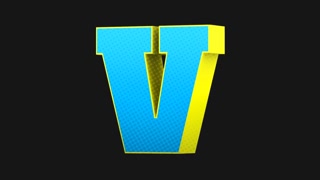 Metal letter v isolated on green screen or chroma key. Abstract of iron burned and cut by a laser or beam of light. Burning steel Text Effect.Can be used as logo. 3d Animation alphabet 4k