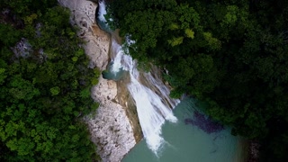 Roberto Barrios waterfalls aerial drone. The Roberto Barrios waterfalls is a natural landscape, where the impressive waterfall reflects the beauty of the state of Chiapas.
