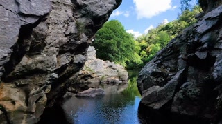 Beautiful View From Rock On Lake Or River, Moving Shot, Amazing Nature Of Scandinavian Country
