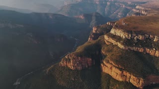 Aerial view of Blyde River Canyon with low clouds, a natural attraction with mountains and wildlife, South Africa.