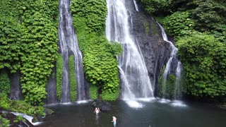 Aerial Banyumala Twin Waterfalls in Bali Indonesia