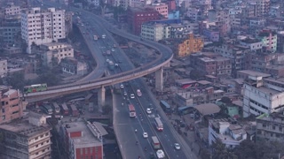 Aerial view of busy urban landscape with highway and traffic in downtown, Dhaka, Bangladesh.