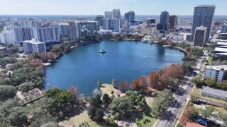Eola Park At Orlando In Florida United States. High Rise Buildings Landscape. Financial District. Orlando At Florida United States. Downtown City. Urban Outdoor.