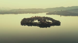 Aerial view of West Lake (Xi Hu) at sunrise in Hangzhou China