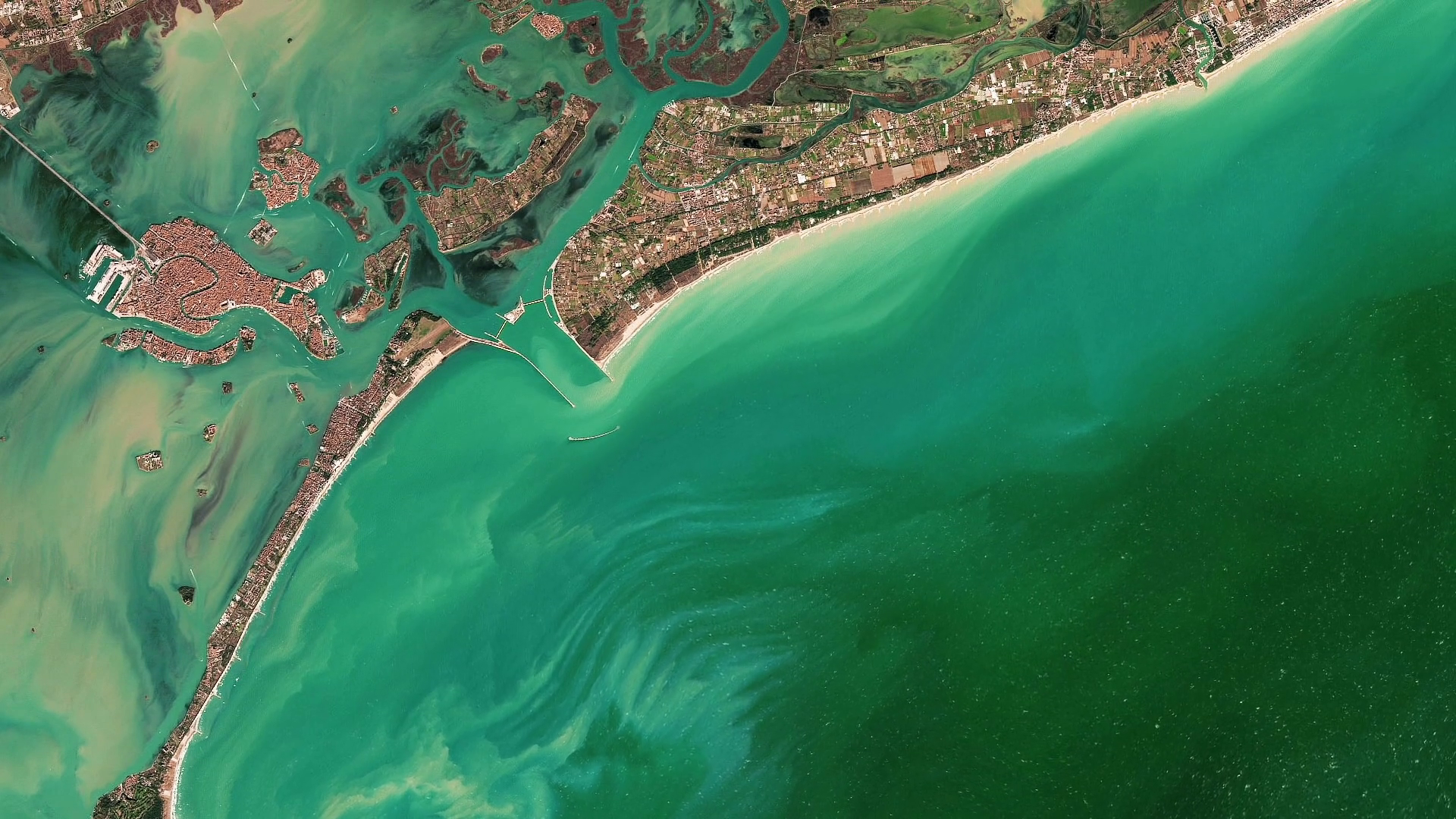 Aerial Satellite View From Space Of Venice Italy Harbor Coastline Animation Based On Image By Nasa