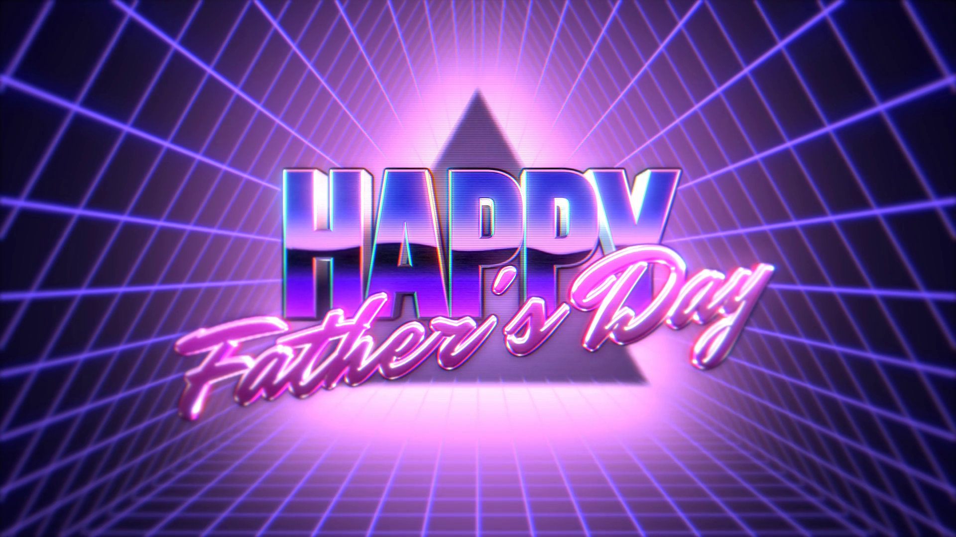 Animation Text Happy Fathers Day And Neon Blue Triangles In Galaxy Retro Holiday Background Dynamic Style For Club And Entertainment Template