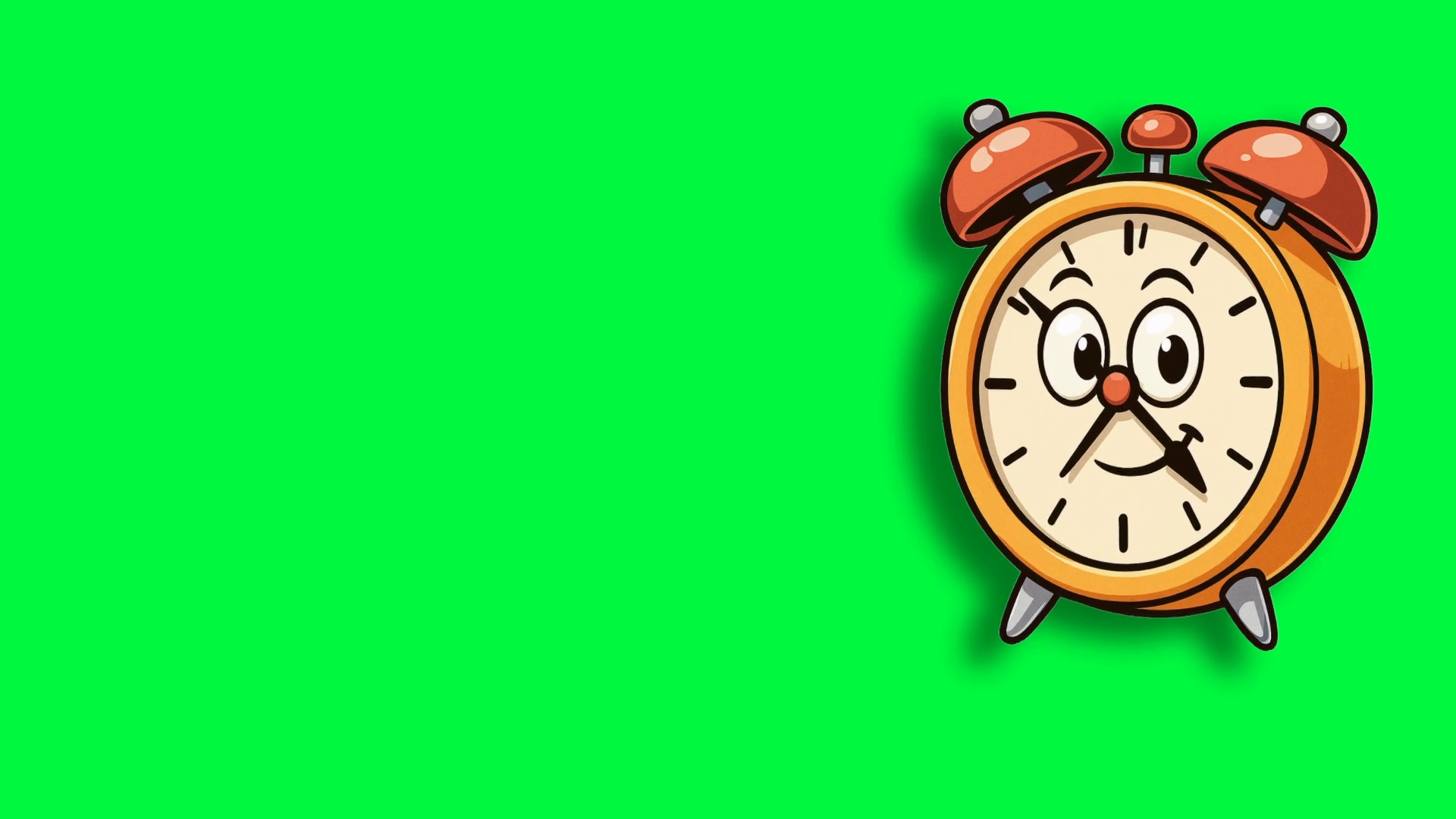 Cheerful Animated Alarm Clock Character With A Smiling Face On A Green Screen Background