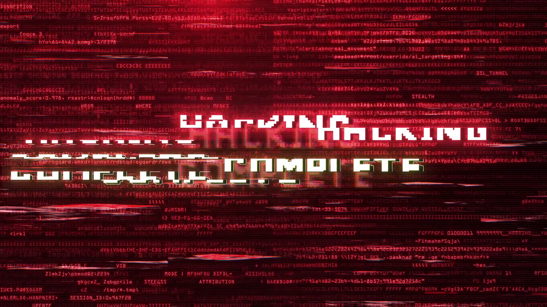 Hacking Complete Alert Warning Over Cybersecurity Glitch Error With Red Computer Code Animation Background