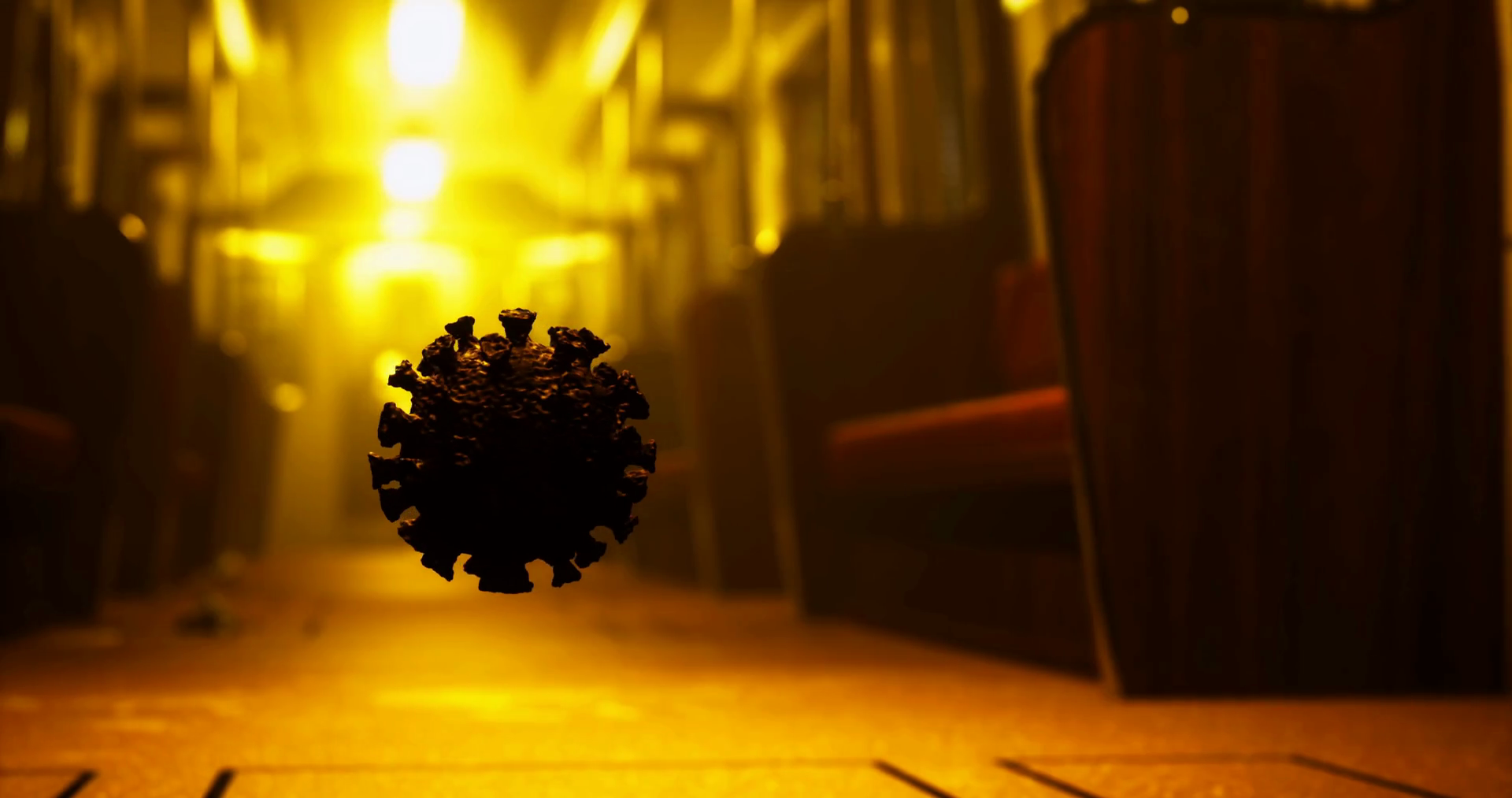 Imaginary Virus Floats In An Empty Subway Train During Eerie Evening Hours
