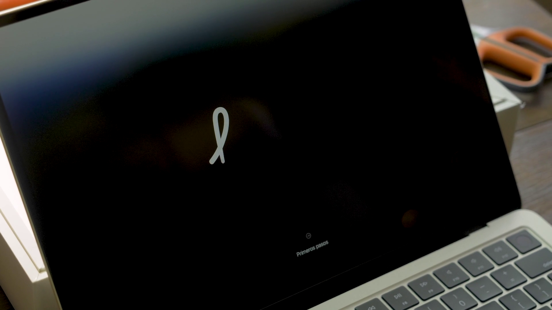 Kharkiv Ukraine November 6 2024 New Macbook Air Powered By Arm M3 Processor Turned On After Unboxing Welcome Message Displayed In
