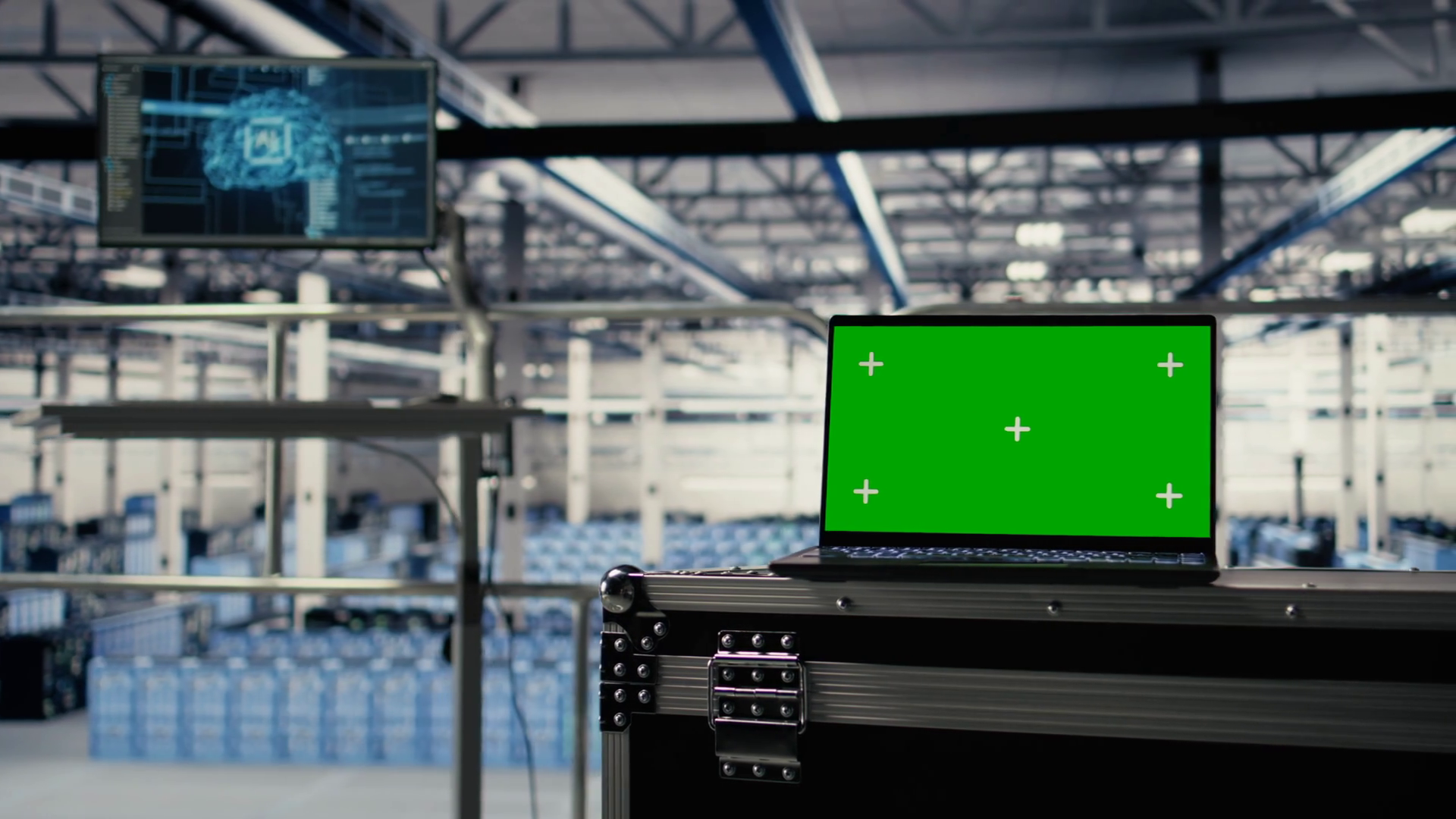 Mockup Laptop In Server Room With Machine Learning Technology Detecting Data Patterns Isolated Screen Notebook In Data Center Ensuring