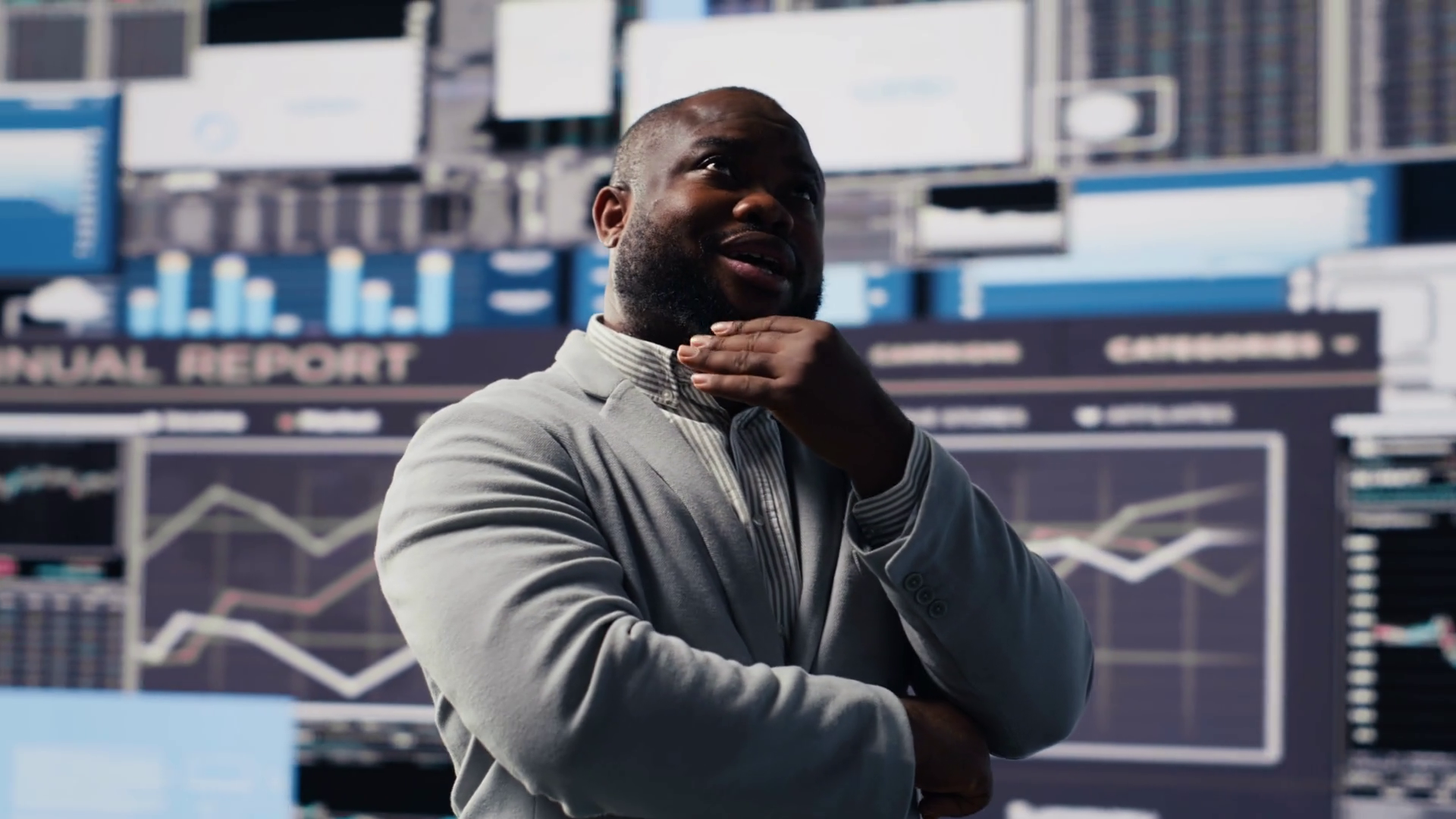 Modern Black Entrepreneur Thinking About New Powerful Ideas To Obtain Funds Reviewing Data Insights For The Financial And Kpi Projections