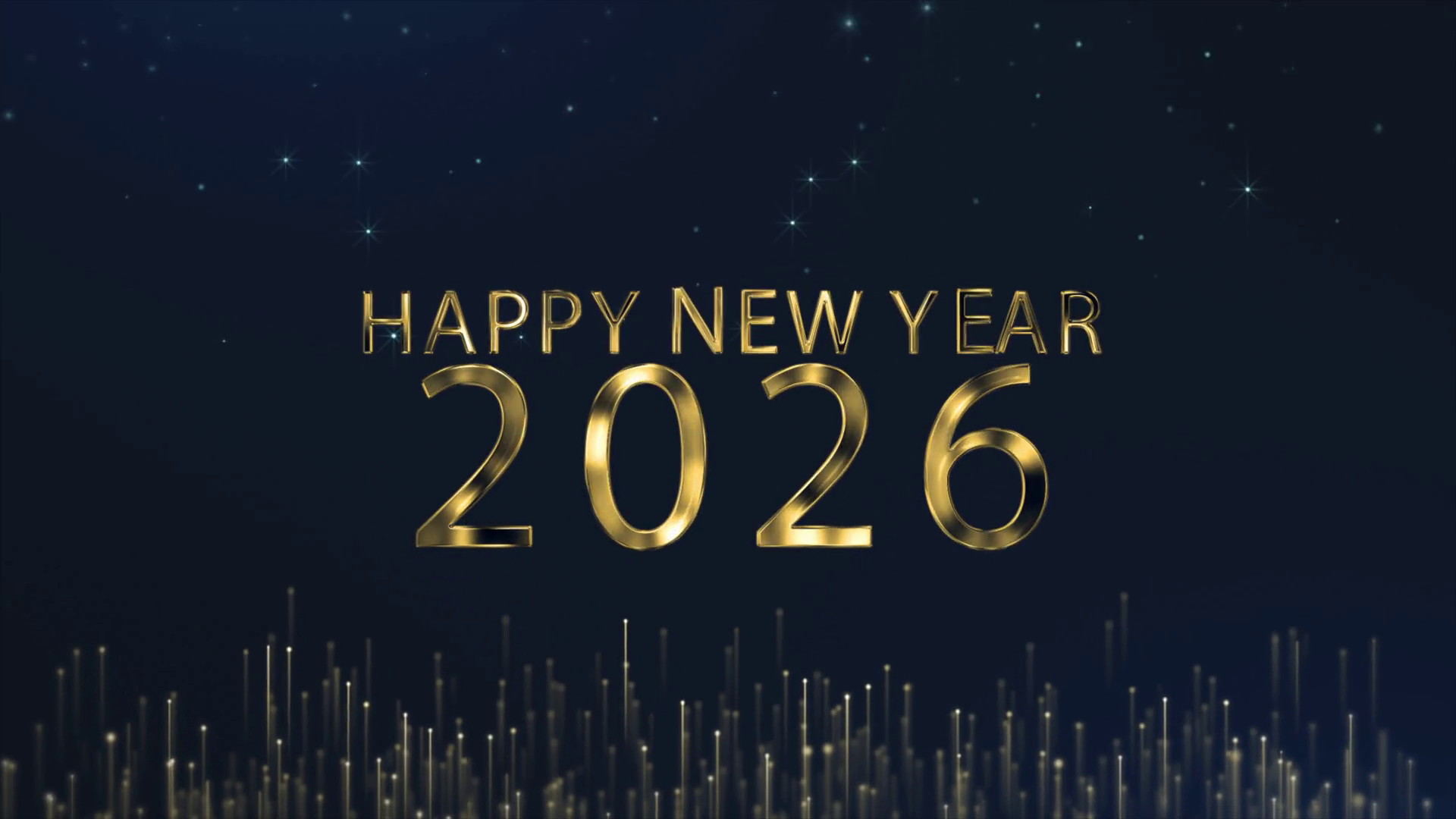 Numbers 2026 On A Starry Black Background Written With Golden Text Animated Text That Says Happy New Year 2026 3d Illustration