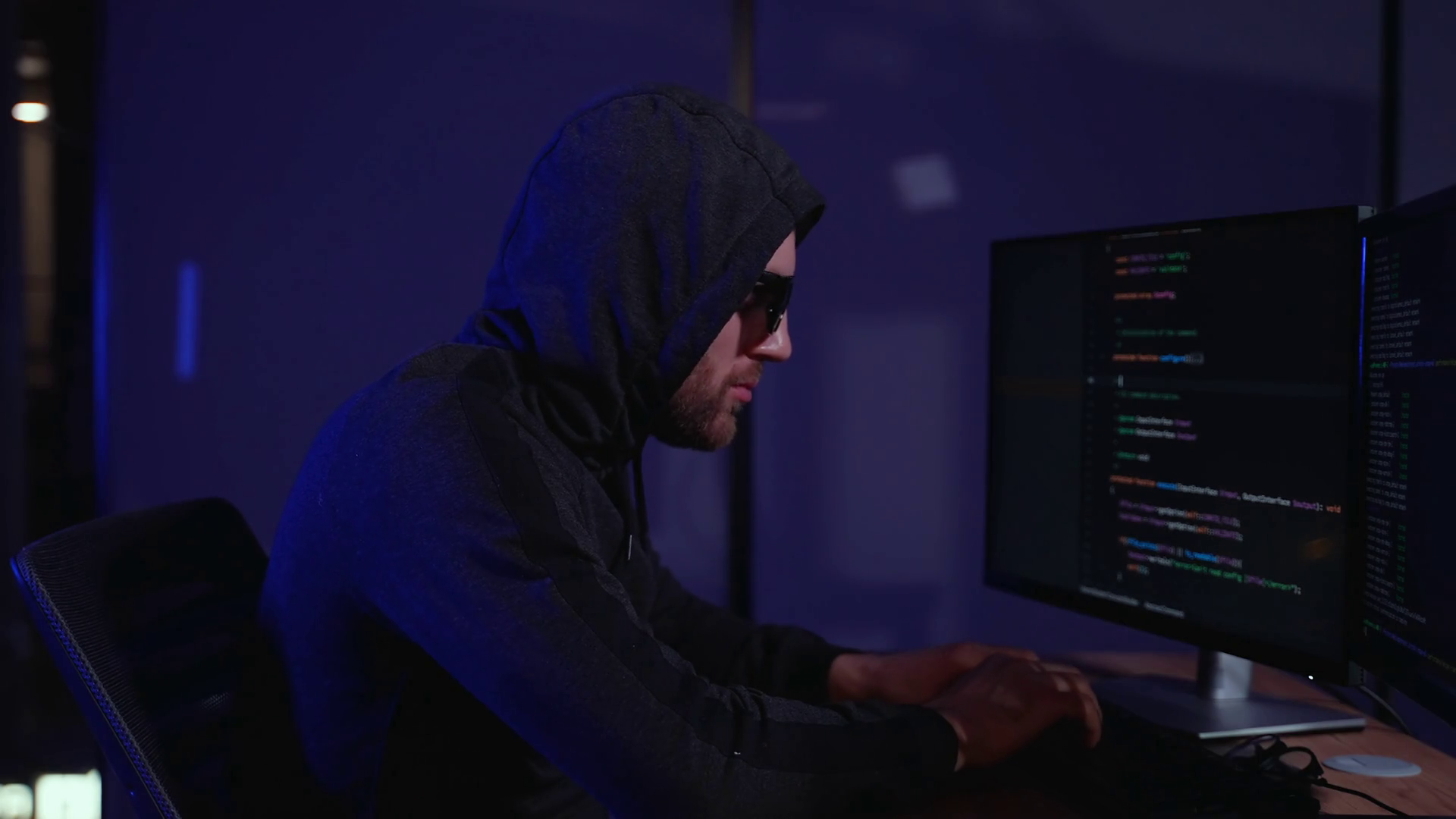 Programmer Writes Code For Hacker Attack Hacker Holding Finger On Lips