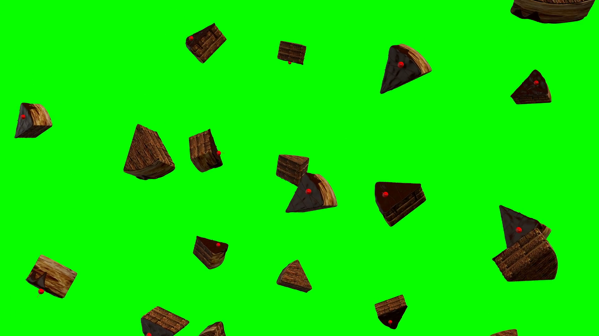 Rain Of 3d Chocolate Cake Pieces Falling On Green Screen Or Chroma Key Background Used For Animations On Birthday Bakery Pastry Diet Fast Food Obesity Gluttony Concept