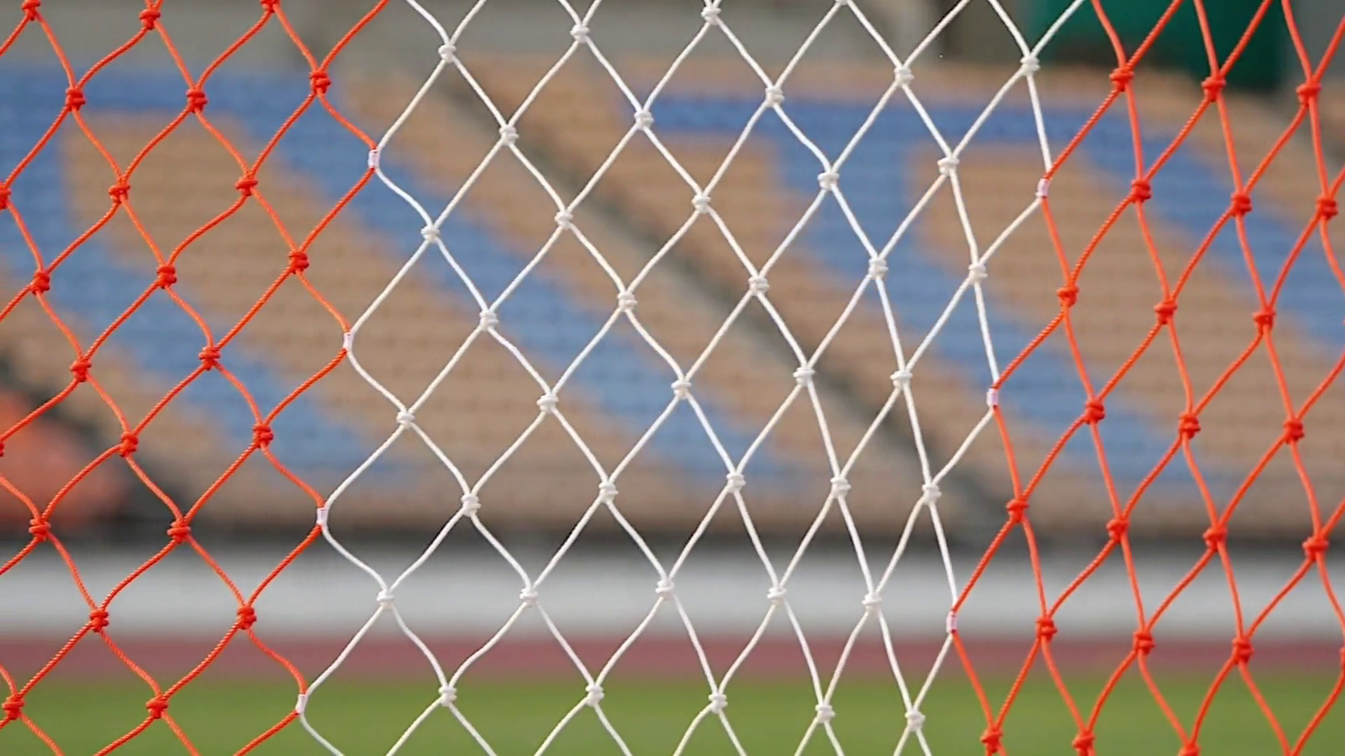 Soccer Ball Nestled In The Net After A Goal At A Stadium During A Match Game