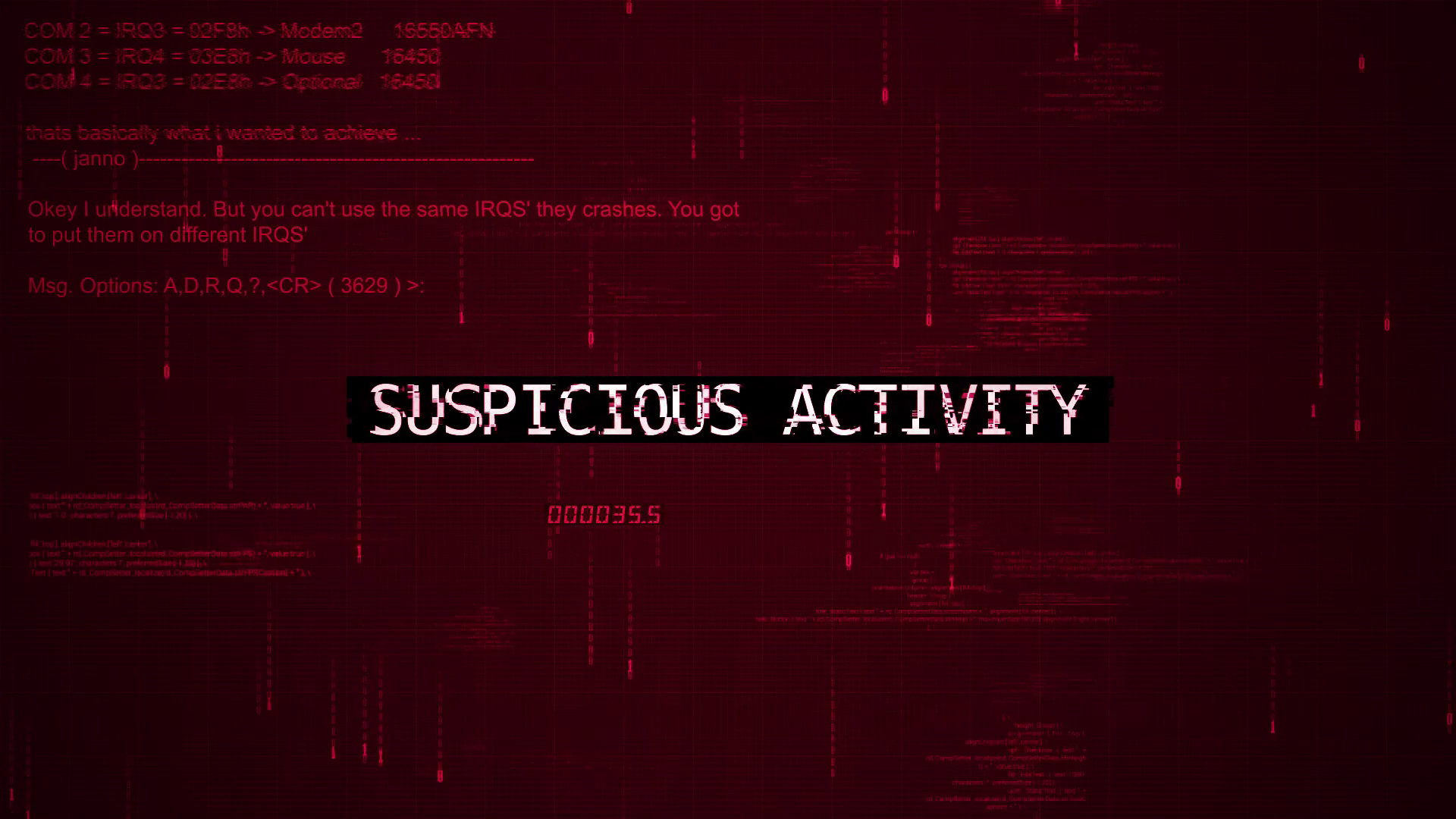 Suspicious Activity Warning Text On Hacking Background Screen V 02