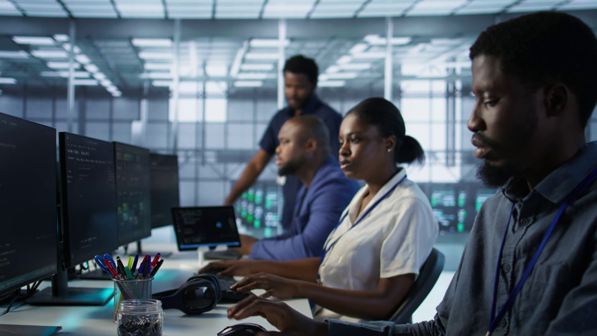 Team Leader In Server Room Teaching Intern To Develop Disaster Recovery Plans Ensuring Minimal Downtime It Specialist In Data Center Worker