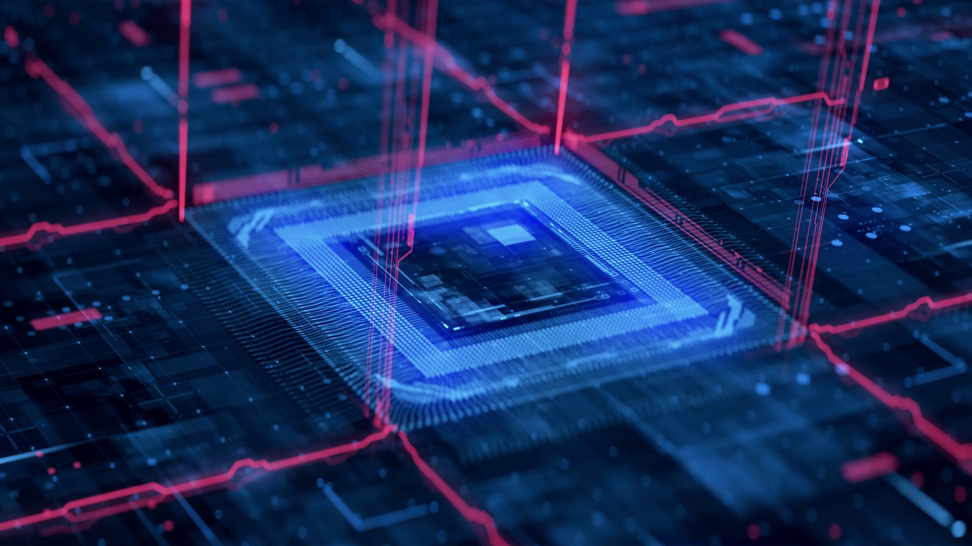 Technology Background Futuristic Cpu Circuit 3d Visualization Ai Processor Power Colorful Blue Bright Digitalization Process Hud Data