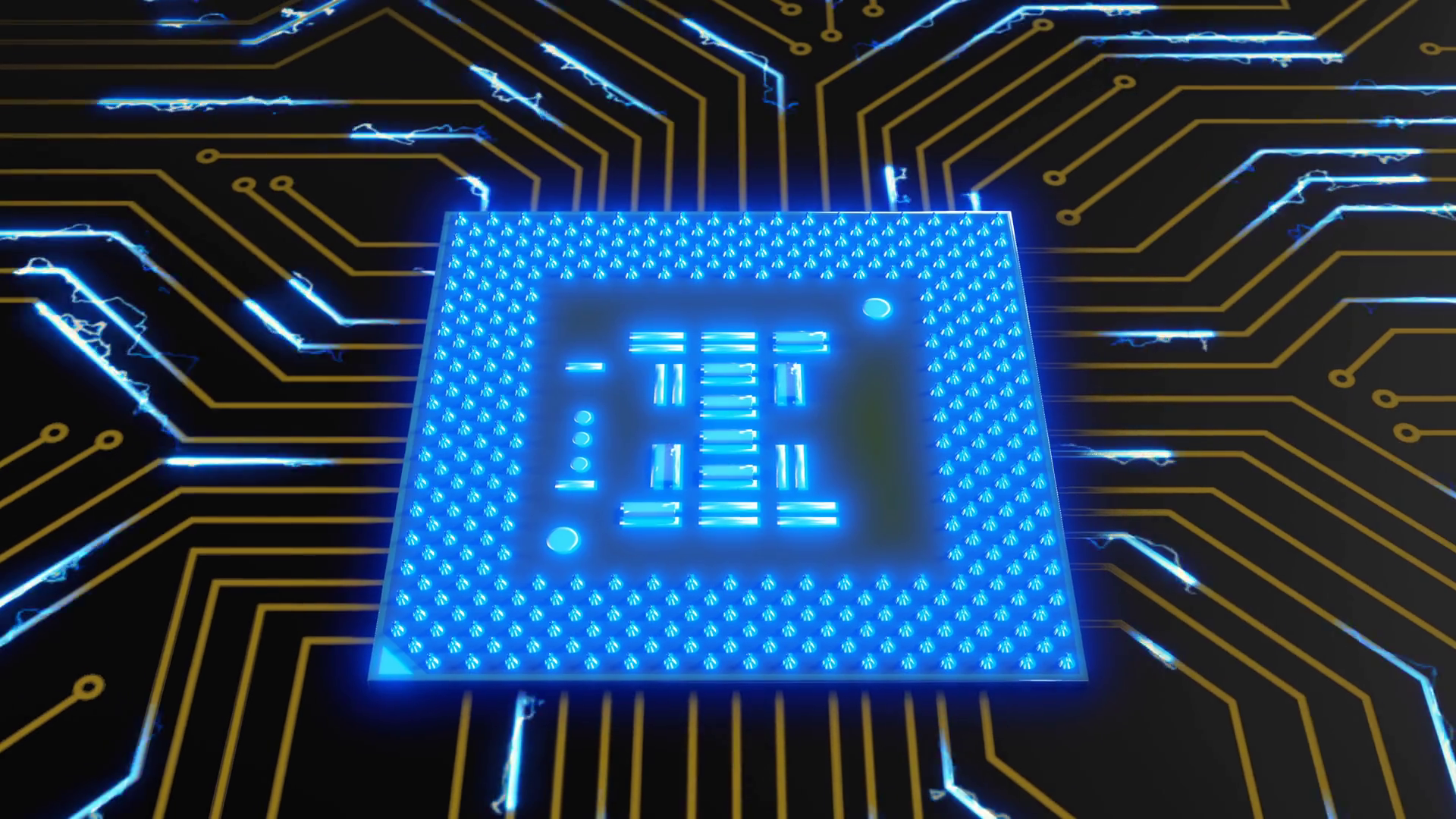 The Computers Processor Pulses Blue Light On The Circuit Board 3d Rendering