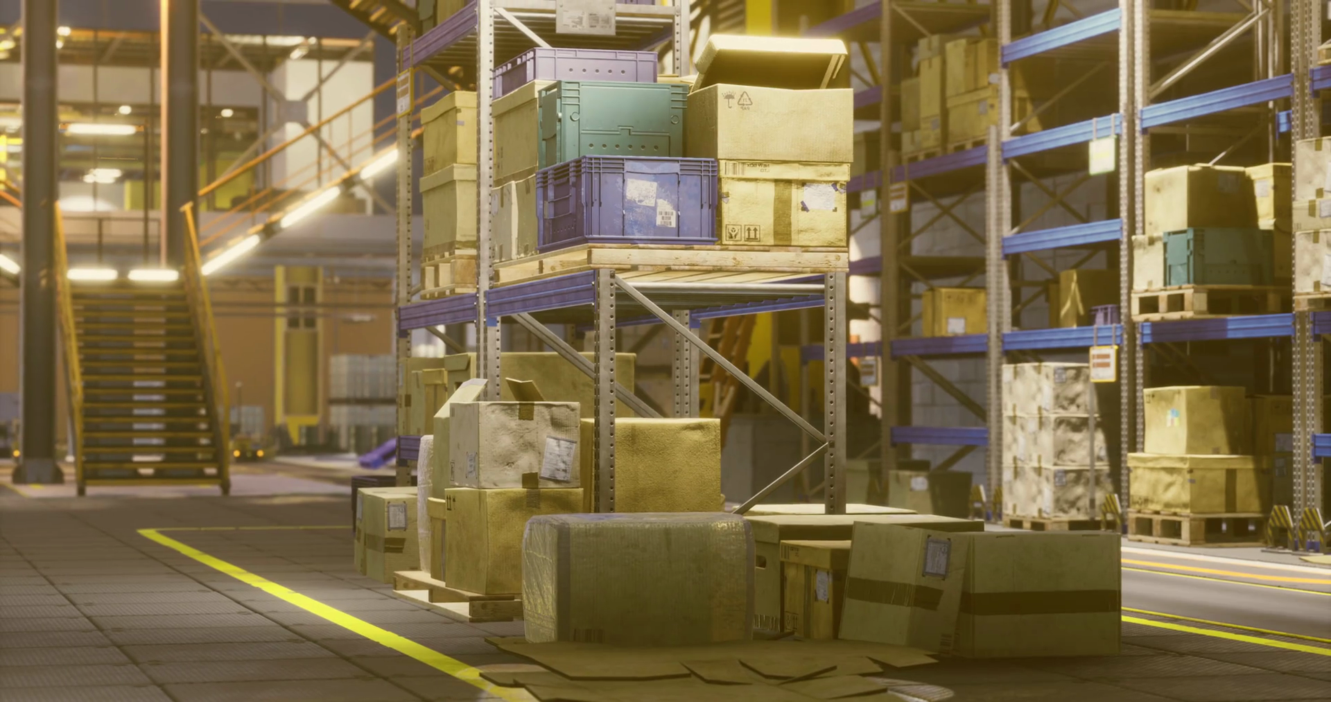 Warehouse Stacked High With Boxes During Evening Hours Near Loading Bay